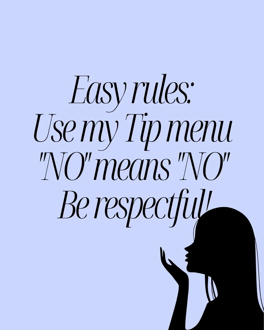 Easy rules: Use my Tip menu "NO" means "NO" Be respectful!